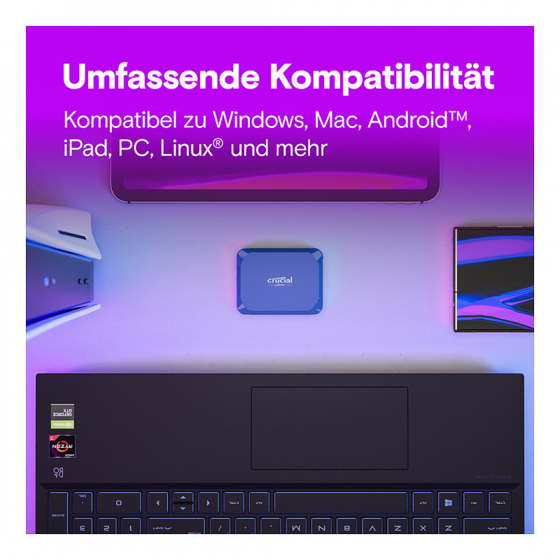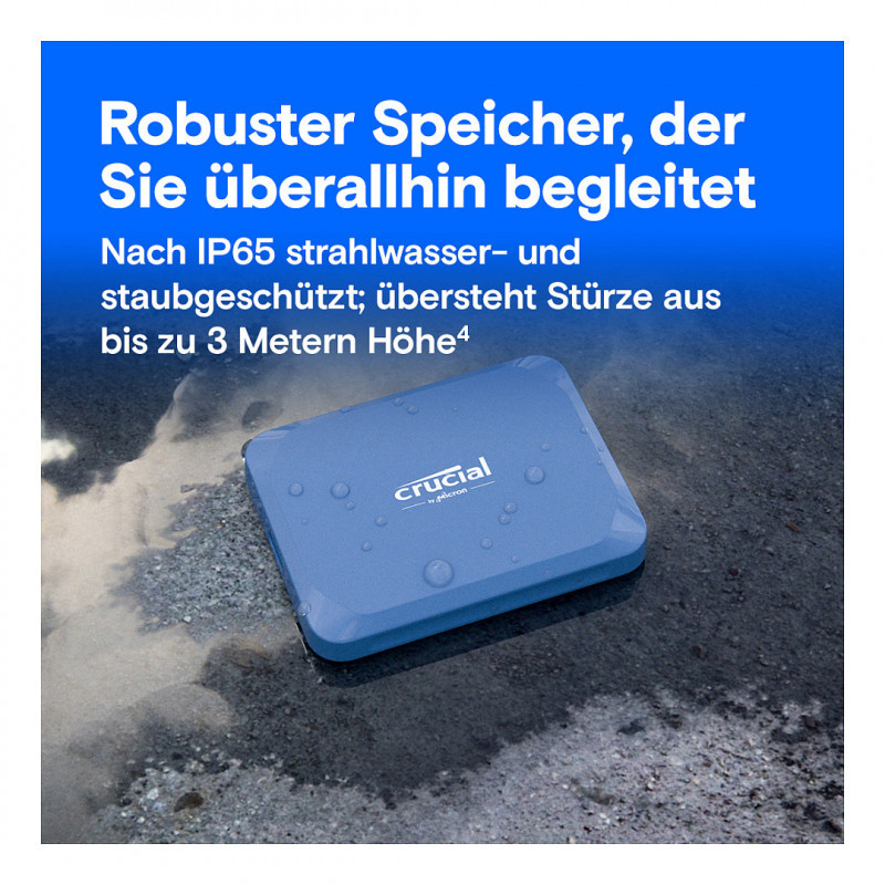 Crucial X10 4TB Portable SSD (4TB, 2,5") – kompaktiškas ir itin greitas nešiojamas SSD diskas su USB-C (USB 3.2) jungtimi, skirtas dokumentų, nuotraukų, vaizdo įrašų, žaidimų ir kitų failų saugojimui bei atsarginėms kopijoms. 4 TB talpa leidžia patogiai saugoti itin didelius failus, o modernus dizainas užtikrina patvarumą ir mobilumą.