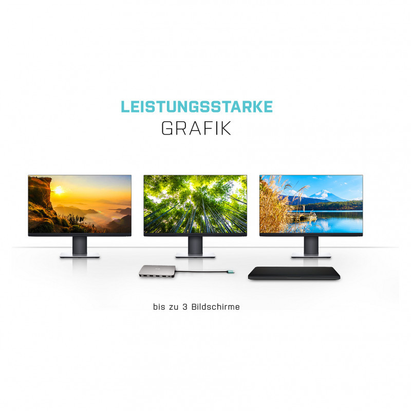 Do you enjoy detailed graphics with high resolution? If so, then this station can allow you to connect to up to three* external monitors or TVs!* You can choose from multiple ports for your monitor connection: 1x HDMI and 2x Display Ports, which can all be used at the same time.