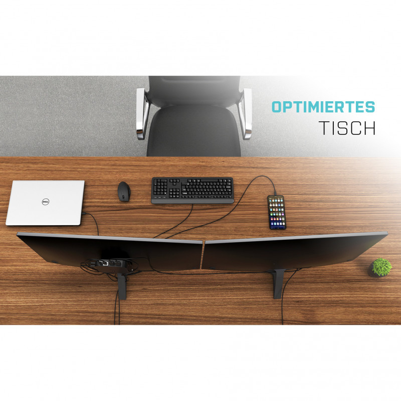 USB-C office docking station with support for up to 2 external monitors with 4K resolution. The station is compatible with any laptop equipped with a USB-C or Thunderbolt 3 port. 6x USB ports, reliable and quick connection to your business network thanks to an integrated LAN port and support for installation behind a monitor make the docking station an ideal partner for professionals. And of course, the station is capable of charging your laptop or tablet with up to 100 W.