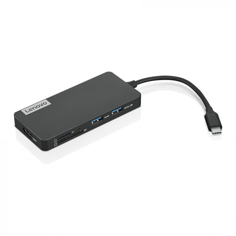 "Lenovo GX90T77924. Connectivity technology: Wired, Host interface: USB 3.2 Gen 1 (3.1 Gen 1) Type-C. Product colour: Grey, Compatible memory cards: MicroSD (TransFlash), SD, Hub interfaces: HDMI, USB 2.0, USB 3.2 Gen 1 (3.1 Gen 1) Type-A, USB 3.2 Gen 1 (3.1 Gen 1) Type-C. Power supply type: USB, Power consumption (max): 15 W. Windows operating systems supported: Windows 10. Width: 247 mm, Depth: 49.6 mm, Height: 13 mm"\n"One-stop travel docking is finally here. Connect and charge new and legacy devices wherever you happen to be. Sleek and compact, the Lenovo USB-C 7-in-1 Hub fits unlimited productivity inside your everyday bag."