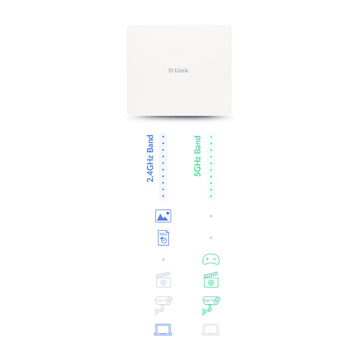 "D-Link AX3000 Wi-Fi 6 Dual-Band PoE Outdoor Access Point. 2.4 GHz, 5 GHz, Maximum data transfer rate: 3000 Mbit/s. Security algorithms: 64-bit WEP, 128-bit WEP, SSID, WEP, WPA, WPA2, WPA3. Ethernet LAN data rates: 10,100,1000,2500 Mbit/s. Power over Ethernet (PoE). Product colour: White. Power consumption (max): 16.7 W"\n"Nuclias Connect AX3000