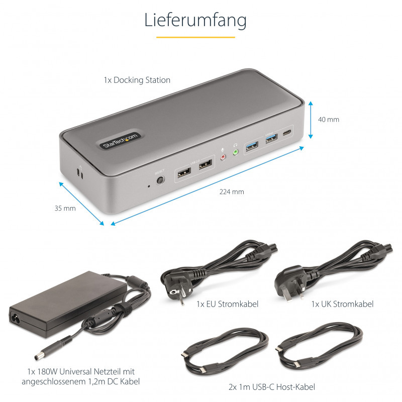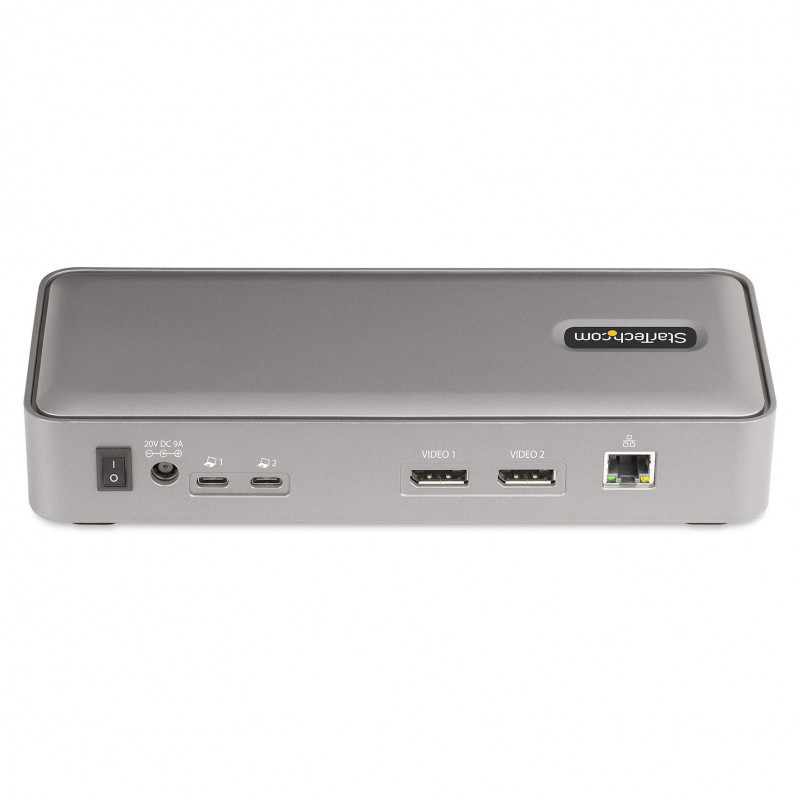 "StarTech.com Dual-Laptop USB-C KVM Docking Station, Dual Monitor 4K 60Hz DisplayPort Dock, 5-Port USB Hub, GbE, 90W/45W Power Delivery to Two Laptops, Windows/Mac, 2-Host KVM Dock - TAA. Keyboard port type: USB, Mouse port type: USB, Video port type: DisplayPort. Cabling technology: 10/100/1000Base-T(X), Networking standards: IEEE 802.3, IEEE 802.3ab, IEEE 802.3u. HD type: 4K Ultra HD, Maximum resolution: 3840 x 2160 pixels, Chipset: DisplayLink - DL6950, Genesys Logic - GL3590, Genesys Logic - GL9510, Parade - PS186, Realtek -.... Product colour: Silver, Housing material: Plastic, LED indicators: LAN, Power. Input voltage: 100 - 240 V, Input current: 2.4 A, Output voltage: 20 V"\n"Share a dual 4K 60Hz workstation between two laptop computers through a USB Type-C connection