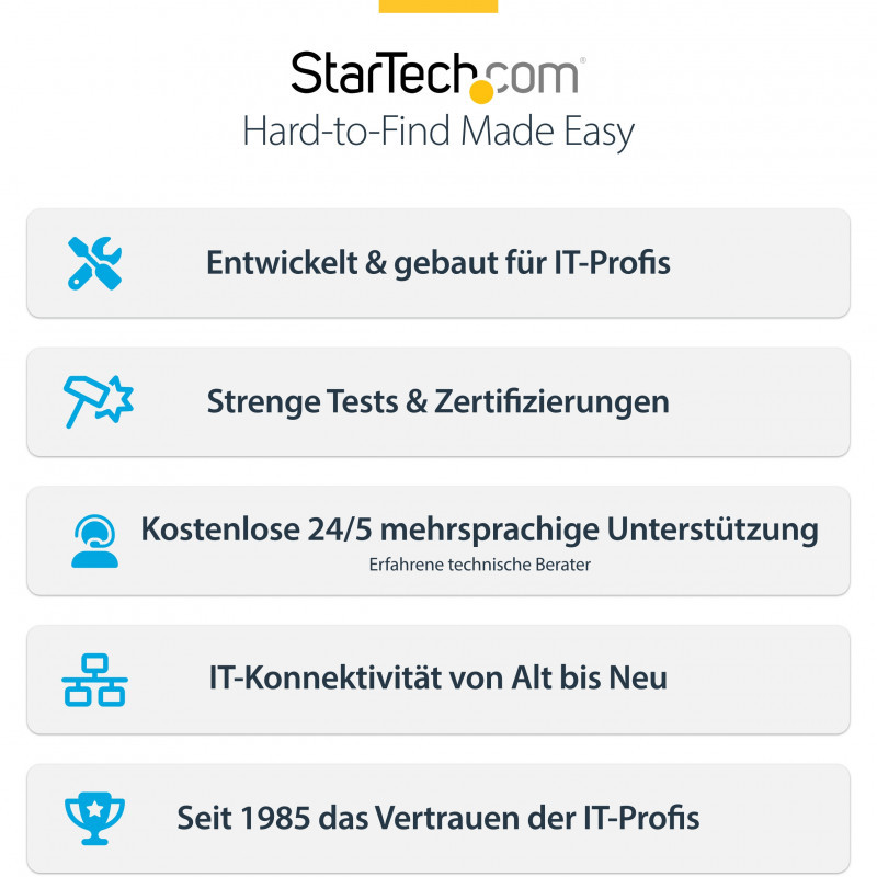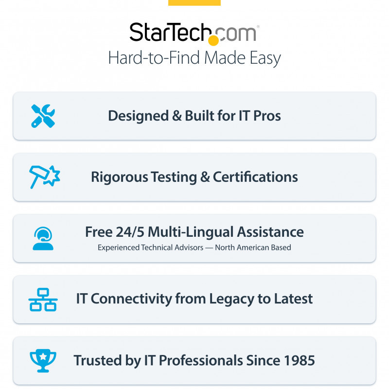 This product is backed for 3-years by StarTech.com, including free lifetime 24/5 multi-lingual technical assistance."