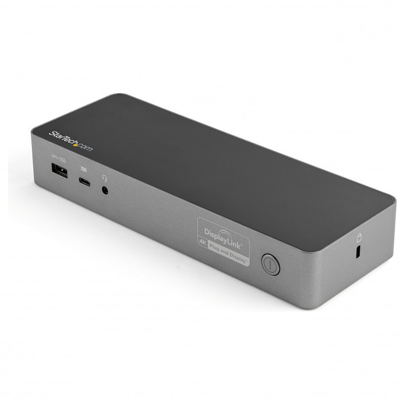 "StarTech.com Universal Laptop Docking Station, Hybrid USB-C & USB-A Dock, Dual 4K DP & HDMI, 100W PD, Mac / Windows / Chrome OS, 4x USB 5Gbps Hub, GbE. Connectivity technology: Wired, Host interface: USB 3.2 Gen 1 (3.1 Gen 1) Type-C, Headphone connectivity: 3.5 mm. Networking standards: IEEE 802.3, IEEE 802.3ab, IEEE 802.3u. Product colour: Black, Grey, Data transfer rate: 5 Gbit/s, Maximum digital resolution: 5120 x 2880 pixels. AC input voltage: 100 - 240 V, Input current: 2.5 A, Power supply: 100 W. Windows operating systems supported: Windows 10, Windows 10 Education, Windows 10 Education x64, Windows 10 Enterprise, Windows 10..., Mac operating systems supported: Mac OS X 10.11 El Capitan, Mac OS X 10.12 Sierra, Mac OS X 10.14 Mojave, Mac OS X 10.15 Catalina,..., Other operating systems supported: ChromeOS"\n"Dual 4K60 | DisplayPort and/or HDMI | USB-IF Certified | 3x USB-A | 1x USB-C | Mac, Windows® & Chrome OS™ | Lock Slot