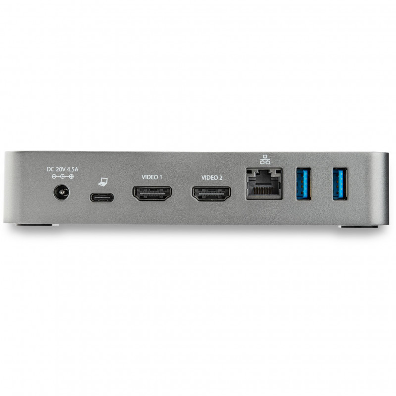 "StarTech.com USB-C Dock - Dual Monitor 1080p HDMI Laptop Docking Station - 65W Power Delivery - 1x USB-C, 3x USB-A, Ethernet - Dual Video Display USB 3.1 Gen 1 Type-C Dock - Mac & Windows. Connectivity technology: Wired, Host interface: USB 3.2 Gen 1 (3.1 Gen 1) Type-C, USB Power Delivery up to: 60 W. Ethernet LAN data rates: 10,100,1000 Mbit/s. Product colour: Black, Silver, Data transfer rate: 5 Gbit/s, HD type: Full HD. AC input voltage: 100 - 240 V, Input current: 1.5 A, Output voltage: 20 V. Windows operating systems supported: Windows 10, Windows 10 Education, Windows 10 Education x64, Windows 10 Enterprise, Windows 10..., Mac operating systems supported: Mac OS X 10.15 Catalina, Mac OS X 11.0 Big Sur, Mac OS X 12.0 Monterey, Mac OS X 13.0 Ventura, Linux operating systems supported: Ubuntu 18.04 LTS, Ubuntu 20.04 LTS"\n"USB 3.1 Gen 1 Type-C Docking Station| Mac & Windows® | 3x USB-A | 1x USB-C | GbE | Mountable | 65W PD