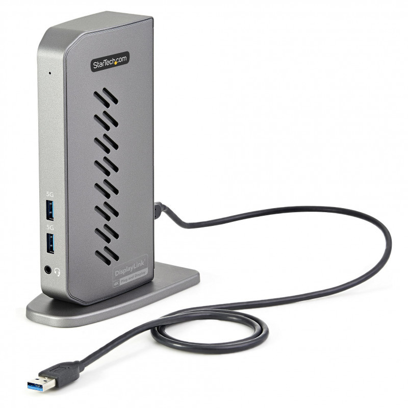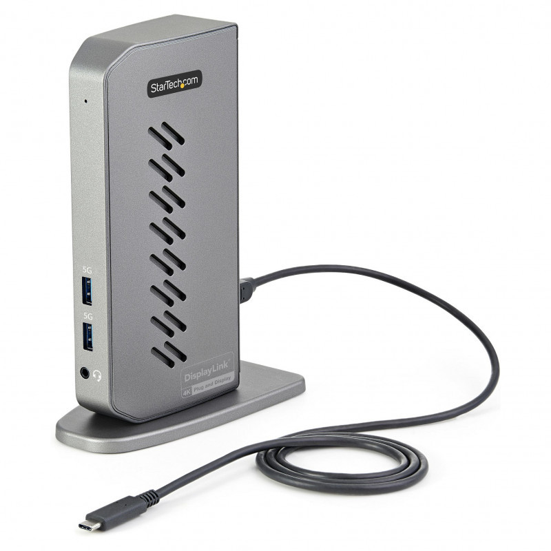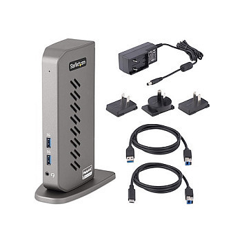 "StarTech.com USB-C USB-A Dock - Hybrid Universal USB 3.0 Docking Station for USB-C or USB-A Laptop - Dual Monitor 4K 60Hz HDMI/DisplayPort - 6x USB-A, GbE - USB 3.1 Gen 1 - Windows/Mac. Connectivity technology: Wired, Host interface: USB 3.2 Gen 1 (3.1 Gen 1) Type-B. Product colour: Black, Grey, Data transfer rate: 10 Gbit/s, Maximum digital resolution: 3840 x 2160 pixels. Compatible power plug types: EU, UK. Windows operating systems supported: Windows 10, Windows 10 Education, Windows 10 Education x64, Windows 10 Enterprise, Windows 10..., Mac operating systems supported: Mac OS X 10.10 Yosemite, Mac OS X 10.11 El Capitan, Mac OS X 10.12 Sierra, Mac OS X 10.14 Mojave,..., Other operating systems supported: ChromeOS. Width: 135 mm, Depth: 73 mm, Height: 187 mm"\n"Universal Hybrid Dock | USB Type-C & USB Type-A | Dual 4K 60Hz HDMI & DisplayPort