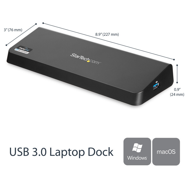 StarTech.com laptop docking stations can be used for cost savings and faster deployment with just a single cable. This USB 3.0 docking station is backed by a competitive 3-year warranty and free lifetime multilingual Technical Support.