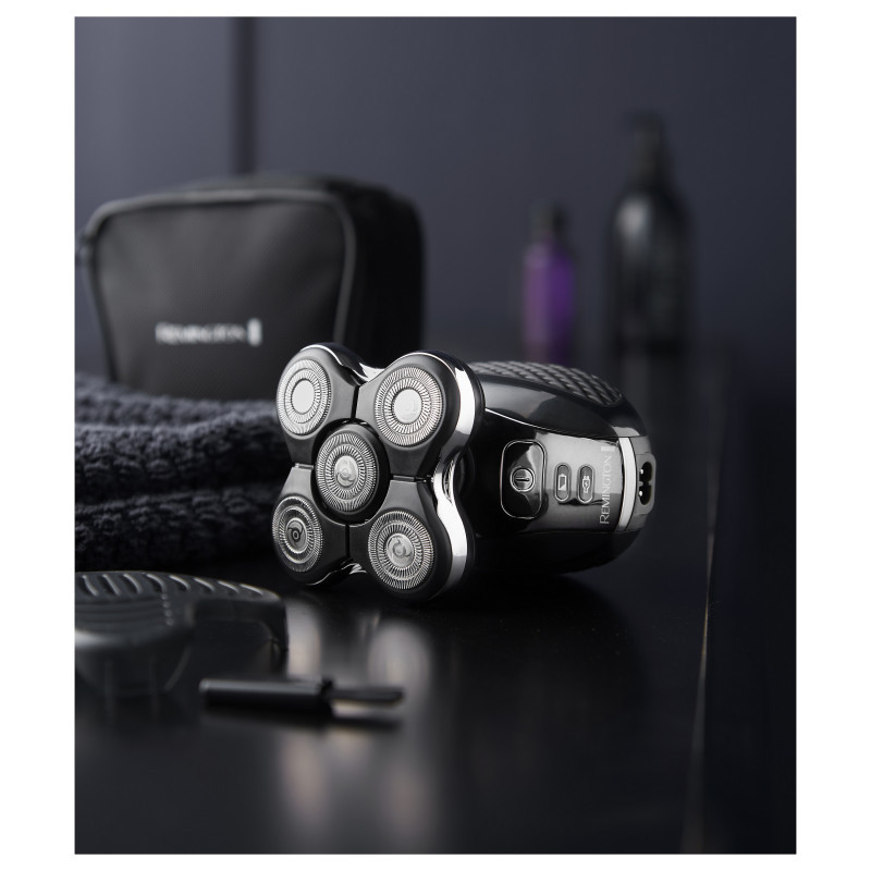"Remington XR1500. Product colour: Black, Body grooming attachments: Head shaver, Minimum hair length: 0.2 mm. Power source: Battery, Operating time: 50 min, Battery recharge time: 2 h. Package type: Box"\n"The Ultimate Series RX5 Head Shaver delivers skin-close results in less than 2-minutes with 5 Cutting Heads, for fast and easy head shaving.