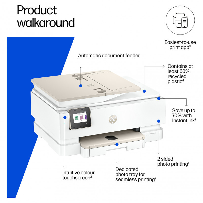 T HP Envy Photo 7930 All-in-One Color Inkjet 10ppm Print Scan Copy Photo Printer USB 2.0 Wi-Fi