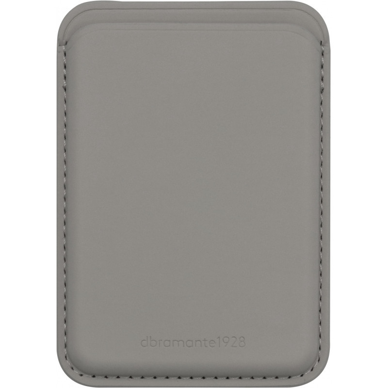 "dbramante1928 Wallet w/ MagSafe ICON. Wallet/card case/travel document holder type: Wallet, Product main colour: Grey, Coloration: Monochromatic. Weight: 30 g, Width: 93 mm, Depth: 8 mm. Quantity per pack: 1 pc(s)"\n"This slim magnetic wallet with quickly snaps into place and fits snugly over your MagSafe-compatible case or phone, allowing you carry your wallet essentials securely without being bulky. Crafted from dbramante1928’s innovative ICON material, it features a soft-touch finish, exceptional durability, and an advanced top layer that resists stains, splashes and scratches, including easy removal of pen ink. Made with GRS-certified recycled content and fully recyclable, it’s the perfect choice for those seeking everyday convenience, a luxurious feel, and a more responsible choice. "