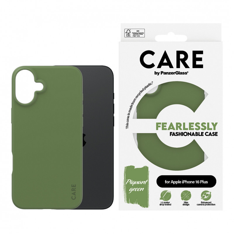 "PanzerGlass CARE™ by ® Case Green iPhone 16 Plus. Case type: Cover, Brand compatibility: Apple, Compatibility: Apple - iPhone 16 Plus, Product colour: Green"\n"Fearlessly Fashionable, BABY!