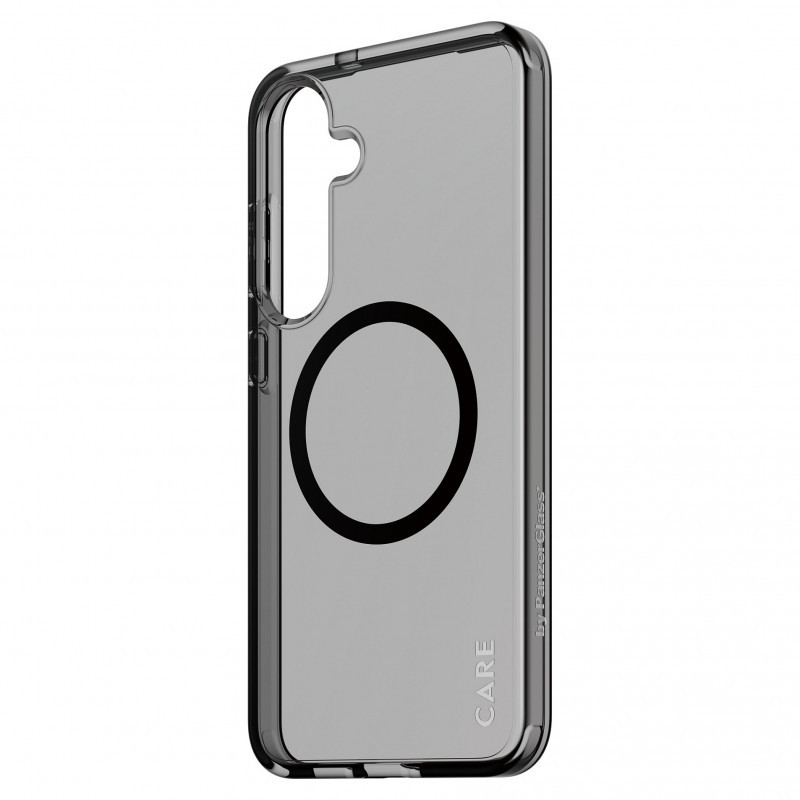 "PanzerGlass CARE™ by ® Urban Combat Case Smokey w. Black Qi Compatible Samsung Galaxy S25+. Case type: Cover, Brand compatibility: Samsung, Compatibility: Samsung - Galaxy S25+, Product colour: Black"\n"Say hello to Smokey – the ultimate choice for cool factor. This protective case is probably our hottest and most anticipated new arrival. Made from recycled plastic in the coolest Smokey finish, this slim yet super strong case offers phenomenal protection. Every angle and corner has been drop-tested at 3.6 meters and it offers enhanced camera protection, as well as Oi compatible.