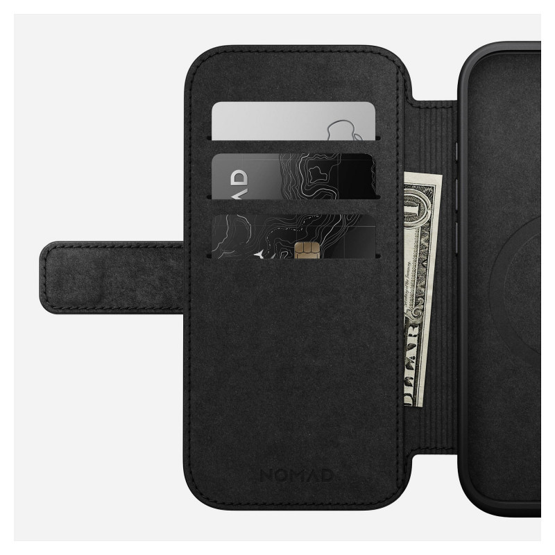 "Nomad NM01679585. Case type: Folio, Brand compatibility: Apple, Compatibility: iPhone 16 Pro, Maximum screen size: 16 cm (6.3""), Surface coloration: Monochromatic, Product colour: Brown, Desktop stand, Number of card pockets: 3"\n"Modern Leather Folio stylishly elevates the look and feel of your iPhone 16 Pro while protecting your device and storing your cash and cards. Built with full-grain, sustainably sourced leather, it will patina with time to develop a finish unique to you.