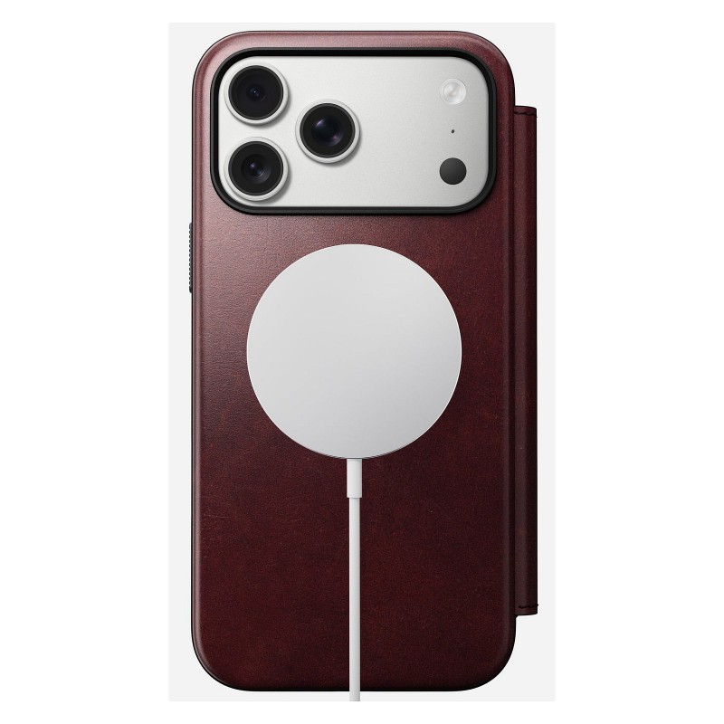 "Nomad Modern Leather Folio. Case type: Folio, Brand compatibility: Apple, Compatibility: iPhone 17 Pro Max, Maximum screen size: 16 cm (6.3""), Surface coloration: Monochromatic, Product colour: Burgundy, Number of card pockets: 3"\n"Built with world-famous Horween® leather, Modern Leather Folio for iPhone 17 Pro Max streamlines your everyday carry by keeping your iPhone, cards, and cash all in one place.