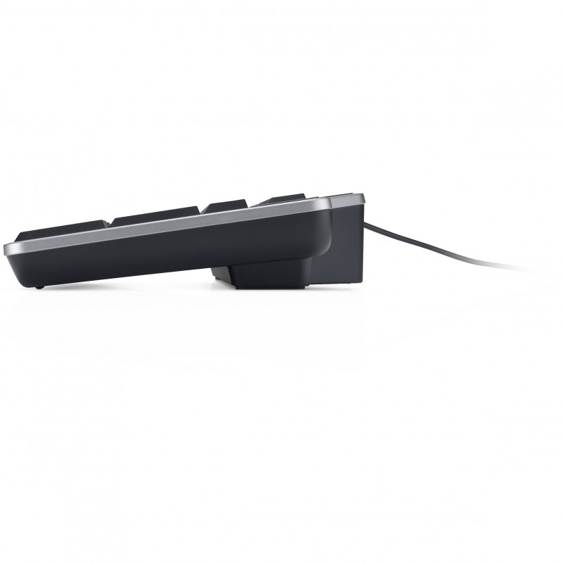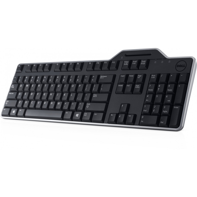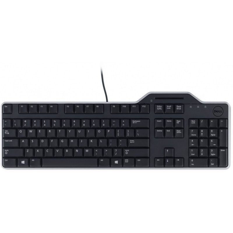 "DELL Pro Smartcard Keyboard - KB813 - US International (QWERTY). Keyboard form factor: Full-size (100%). Keyboard style: Straight. Connectivity technology: Wired, Device interface: USB, Keyboard layout: QWERTY, Recommended usage: Office. Product colour: Black"\n"The KB813 Smartcard keyboard from Dell is designed to offer high security. It is one-stop solution to protect institutional data and intellectual property through a comfortable, stylish keyboard that has an integrated smartcard reader. This Smartcard keyboard provides durable typing solution through spill-resistant, low profile quiet keys with a removable palm rest that helps provide a comfortable typing experience. Its wired connection helps provide secure, fast data and authentication transfers. Moreover, the wired USB connection is easy to connect to virtually any Dell system."