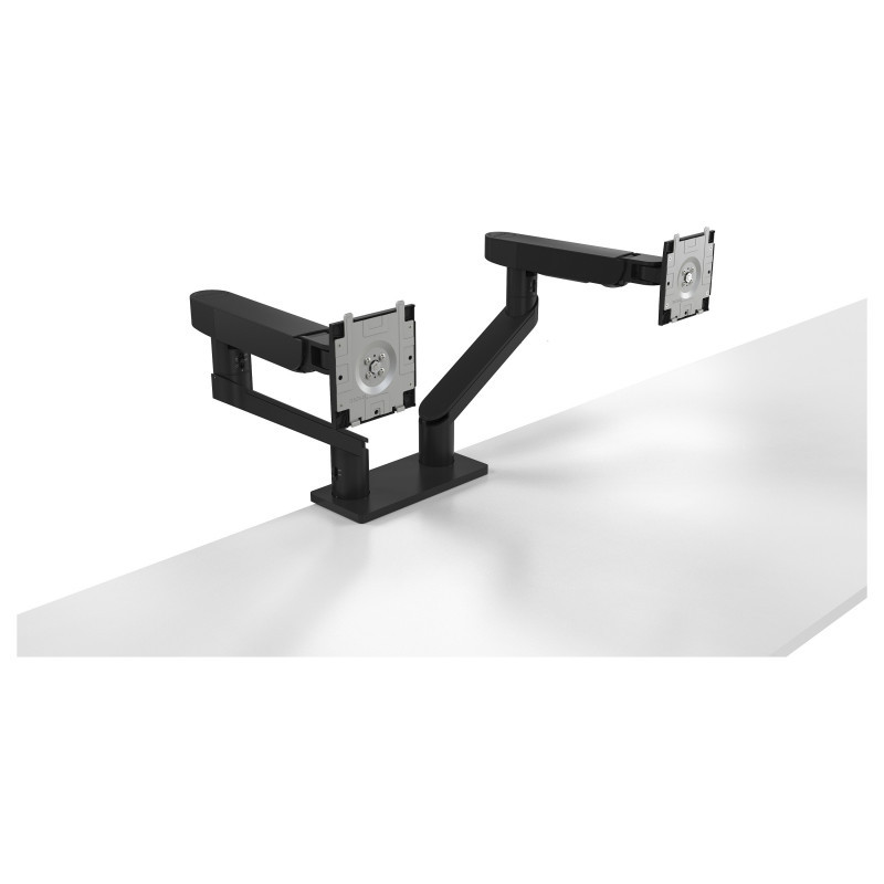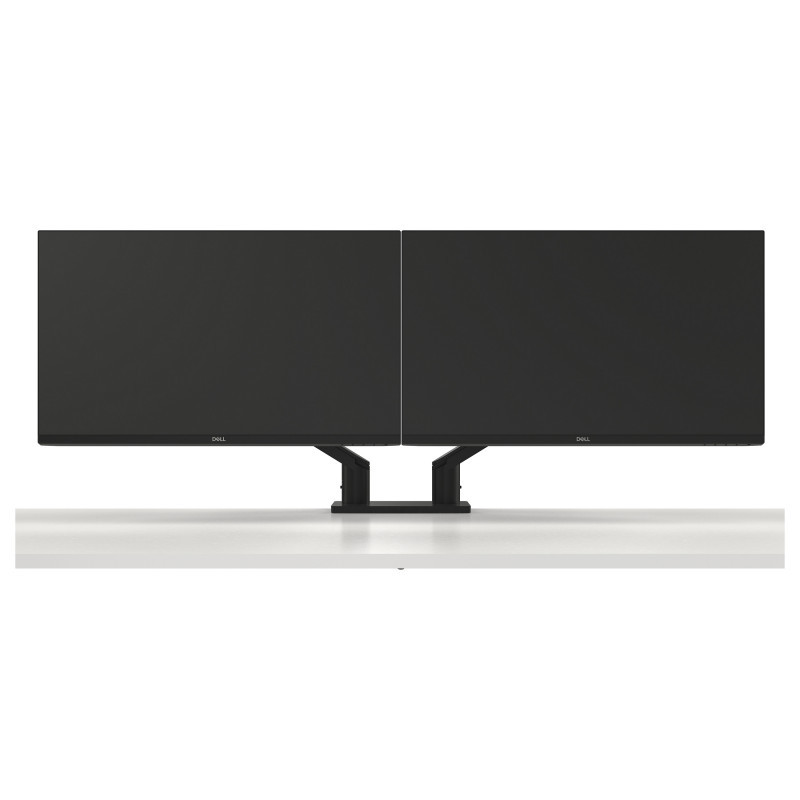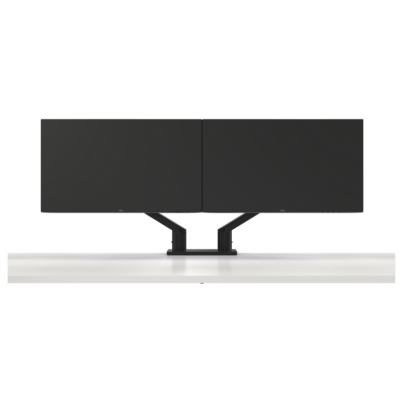 "DELL Dual Monitor Arm – MDA20. Maximum weight capacity: 10 kg, Minimum screen size: 48.3 cm (19""), Maximum screen size: 68.6 cm (27""). Height adjustment, Tilt angle range: -35 - 80°. Product colour: Black"\n"Get maximum productivity with this Dell Dual Monitor Arm – MDA20. Dell Quick Release allows your Dell UltraSharp and P-series monitors to be snapped onto the arms tool-free, while the counterbalance indicator on the arm offers easy replication across identical monitors ensuring rapid deployment across busy workspaces. Select Dell systems can be conveniently mounted behind the monitors for a neat and clutter-free desk. The cable management slot and clips let you route up to 10 cables to ensure wires are hidden away."