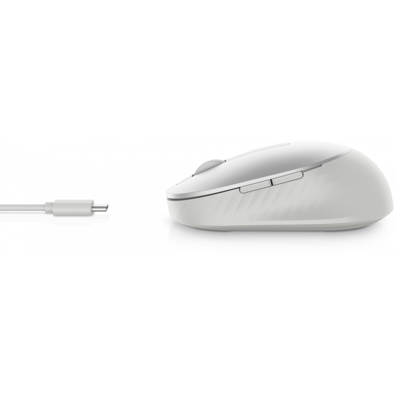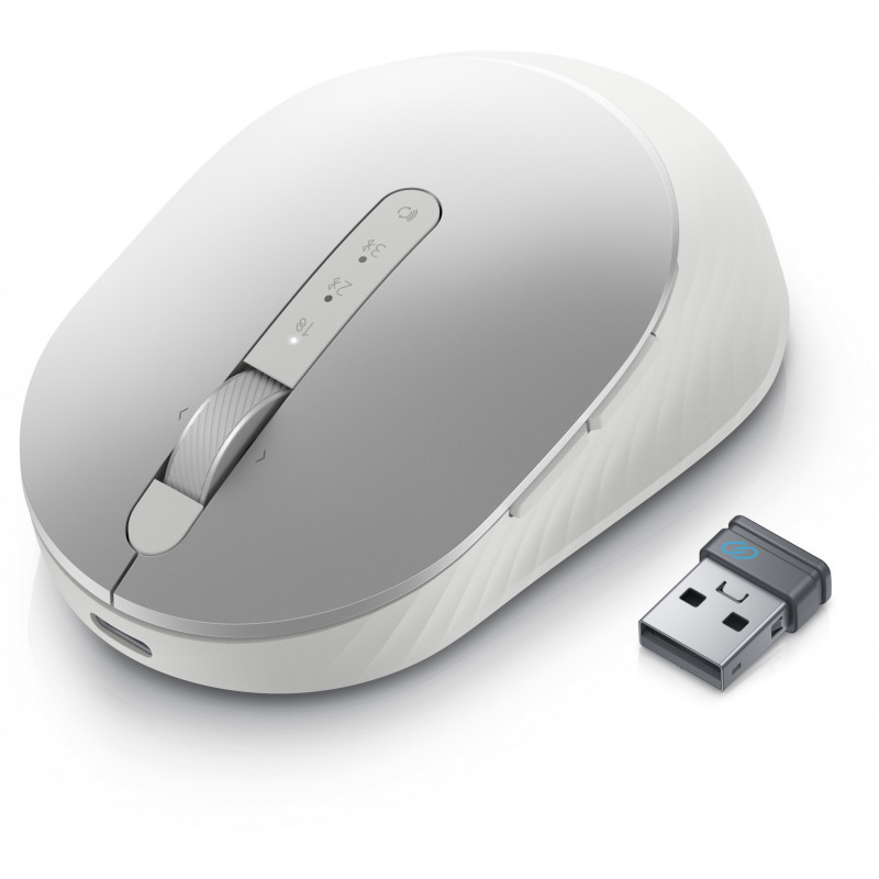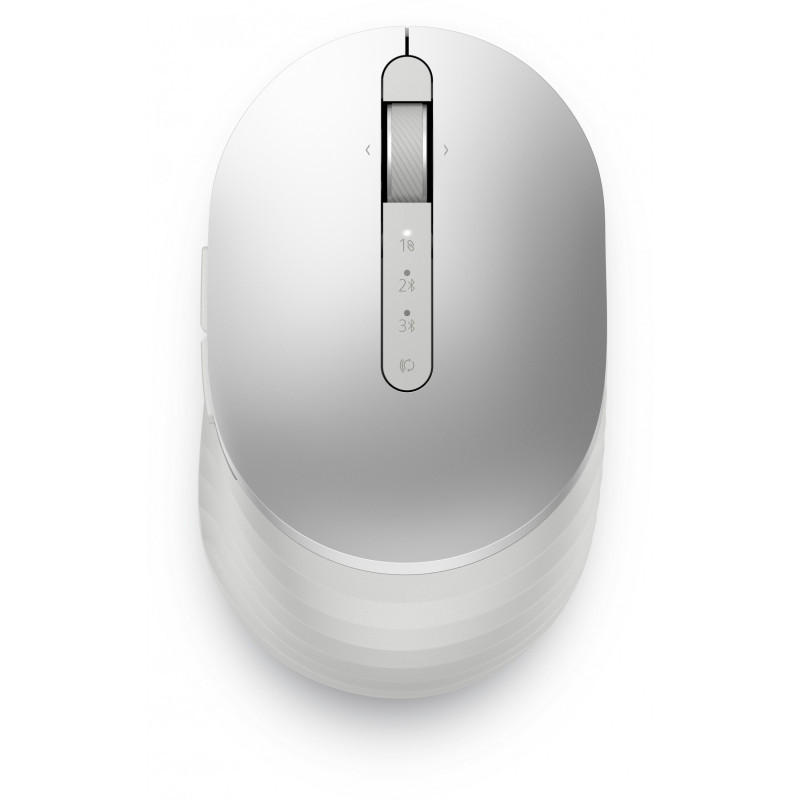 "DELL Pro Premium Compact Mouse - MS7421W - Platinum Silver. Form factor: Ambidextrous. Movement detection technology: Optical, Device interface: RF Wireless + Bluetooth, Movement resolution: 1600 DPI, Buttons type: Pressed buttons, Buttons quantity: 7, Scroll type: Wheel. Power source: Batteries. Product colour: Platinum, Silver"\n"Get uninterrupted productivity with a rechargeable mouse that offers up to six months battery life on a full charge. Connect up to three devices and recharge in just two minutes for a full day’s work."