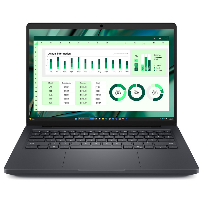 "DELL Pro Max 14 MC14250. Product type: Mobile workstation, Form factor: Clamshell. Processor family: Intel Core Ultra 7, Processor model: 265H. Display diagonal: 35.6 cm (14""), HD type: Full HD+, Display resolution: 1920 x 1200 pixels. Internal memory: 32 GB, Internal memory type: LPDDR5x-SDRAM. Total storage capacity: 1 TB, Storage media: SSD. On-board graphics card model: Intel Arc 140T, Discrete graphics card model: NVIDIA RTX PRO 500 Blackwell. Operating system installed: Windows 11 Pro. Product colour: Black"\n