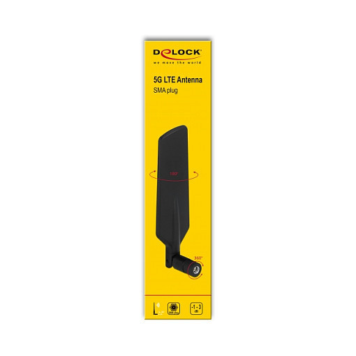 "DeLOCK 12606. Antenna gain level (max): 3 dBi, Frequency band: 0.698 - 0.791, 0.824 - 0.96, 1.42 - 1.52, 1.75 - 2.17, 2.45 - 2.65, 3.48 - 4.2, 4.4 - 4.9 GHz, Impedance: 50 Ω. Antenna type: Omni-directional antenna, Antenna connector type: SMA, Connector gender: Female. Width: 33.2 mm, Depth: 6.17 mm, Height: 156.2 mm. Package type: Box. Quantity per pack: 1 pc(s)"\n"This 5G LTE antenna by Delock allows the usage of different 5G LTE bands inside. It is completely compatible to GSM, UMTS, LTE, ZigBee, Z-Wave, NB-IoT, WLAN 2.4 GHz, Bluetooth, ISM, DECT and LoRa.
