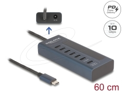 DELOCK 7 Port USB Hub 10 Gbps mit 4 x USB Type-C Buchse und 3 x USB Typ-A Buchse mit PD 80 W