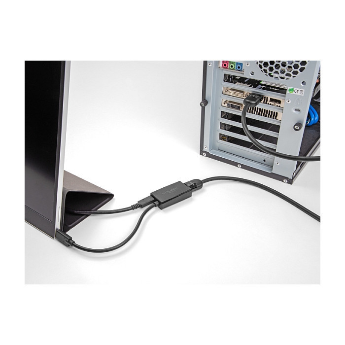 "DeLOCK Adapter HDMI female to USB Type-C male (DP Alt Mode) 4K with PD 100 W. Maximum resolution: 3840 x 2160 pixels, Supported graphics resolutions: 3840 x 2160, Supported video modes: 2160p. Product colour: Black, Cable type: Round cable. Package type: Hanging box. Quantity per pack: 1 pc(s), Packaging content: Adapter DisplayPort to USB Type-C User manual"\n"This adapter by Delock enables the connection of a USB Type-C™ (DisplayPort Alternate Mode) monitor to a free HDMI interface of a PC or laptop.