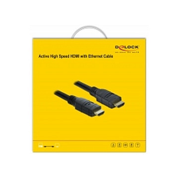 "DeLOCK 85285. Cable length: 15 m, Connector 1: HDMI Type A (Standard), Connector 1 gender: Male, Connector 2: HDMI Type A (Standard), Connector 2 gender: Male, Connector contacts plating: Gold, 3D, Data transfer rate: 18 Gbit/s, Audio Return Channel (ARC), Product colour: Black"\n"This HDMI cable by Delock can be used to connect devices with an HDMI interface, such as televisions, Blu-ray players, monitors or projectors. By supporting a maximum bandwidth of 18 Gbps, content can be displayed with resolutions of up to 4K Ultra HD (3840 x 2160 @ 60 Hz).