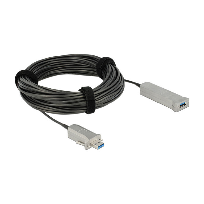 "DeLOCK 20m USB3.0-A + USB Micro-B/USB3.0-A. Cable length: 20 m. Connector 1: USB A, Connector 2: USB A/Micro-USB B, USB version: USB 3.2 Gen 1 (3.1 Gen 1), Connector gender: Male/Female, Maximum data transfer rate: 5 Gbit/s, Product colour: Black, Silver"\n"This USB cable by Delock is used to connect USB devices, such as a webcam or a printer, to a PC or a laptop. This active optical cable is particularly thin and can transmit signals with virtually no loss over longer distances. The integrated Micro USB connector and the included Micro USB cable can supply additional power. The screws and bushings at the terminals ensure a secure connection."