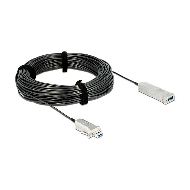 "DeLOCK 50m USB3.0-A + USB Micro-B/USB3.0-A. Cable length: 50 m. Connector 1: USB A, Connector 2: USB A/Micro-USB B, USB version: USB 3.2 Gen 1 (3.1 Gen 1), Connector gender: Male/Female, Maximum data transfer rate: 5 Gbit/s, Product colour: Black, Silver"\n"This USB cable by Delock is used to connect USB devices, such as a webcam or a printer, to a PC or a laptop. This active optical cable is particularly thin and can transmit signals with virtually no loss over longer distances. The integrated Micro USB connector and the included Micro USB cable can supply additional power. The screws and bushings at the terminals ensure a secure connection."