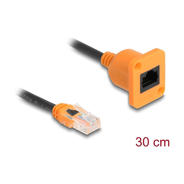 Delock D-Typ RJ45 Kabel Stecker zu Buchse Cat.5e UTP orange / schwarz 30 cm