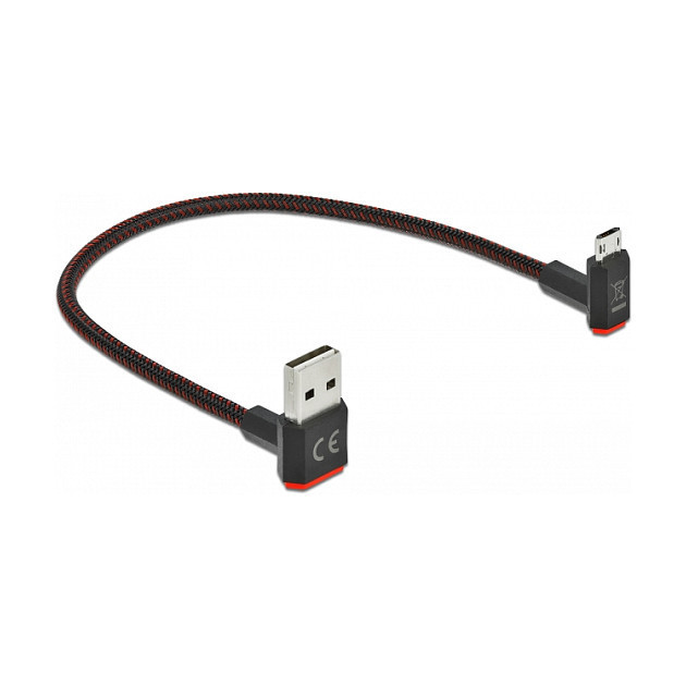 "DeLOCK EASY-USB 2.0 Cable Type-A male to EASY-USB Type Micro-B male angled up / down 0.2 m black. Cable length: 0.2 m. Connector 1: USB A, Connector 2: Micro-USB B, USB version: USB 2.0, Product colour: Black"\n"This cable by Delock with EASY-USB Type-A male and