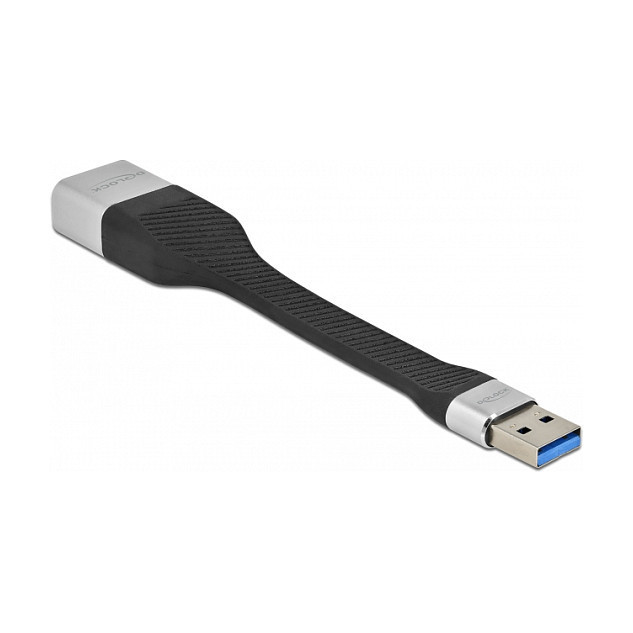 "DeLOCK FPC Flat Ribbon Cable USB Type-A to Gigabit LAN 10/100/1000 Mbps 13 cm. Cable length: 0.13 m, Connector 1: USB Type-A, Connector 2: RJ-45, Data transfer rate: 1000 Mbit/s, Product colour: Black, Silver"\n"Description