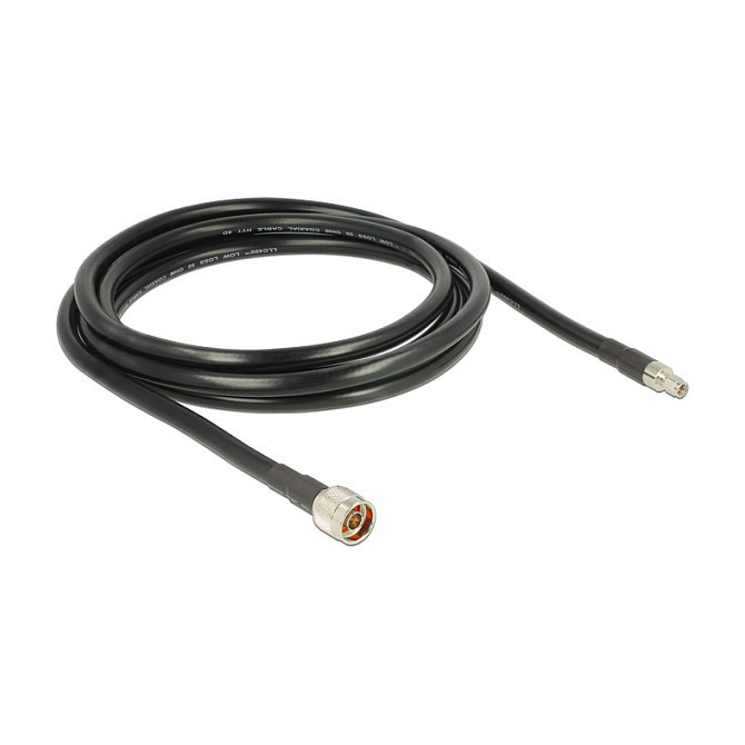 "DeLOCK 3m, N/RP-SMA. Cable length: 3 m, Connector 2: RP-SMA, Cable type: CFD400, LLC400. Quantity per pack: 1 pc(s). Package type: Box"\n"This high-quality coaxial cable ensures a reliable connection of components of the radio frequency technology. It is characterised by a very low attenuation."