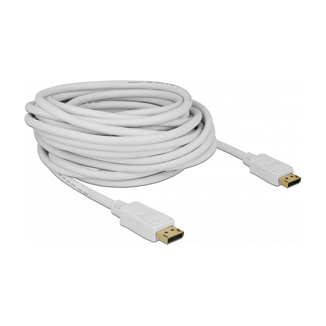 "DeLOCK 84863. Cable length: 10 m, Connector 1: DisplayPort, Connector 2: DisplayPort. Cable diameter: 7.3 mm. Package type: Polybag. Quantity per pack: 1 pc(s)"\n"This Displayport cable by Delock can be used to connect devices with Displayport interface, e.g. displays, projectors or TVs, to a PC or laptop. The triple shielded cable supports a resolution of up to Ultra HD (4K @ 60 Hz) and is downwards compatible to Full-HD 1080p."