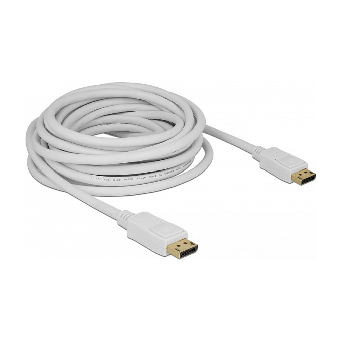 "DeLOCK 84861. Cable length: 7 m, Connector 1: DisplayPort, Connector 2: DisplayPort. Cable diameter: 7.3 mm. Package type: Polybag. Quantity per pack: 1 pc(s)"\n"This Displayport cable by Delock can be used to connect devices with Displayport interface, e.g. displays, projectors or TVs, to a PC or laptop. The triple shielded cable supports a resolution of up to Ultra HD (4K @ 60 Hz) and is downwards compatible to Full-HD 1080p."