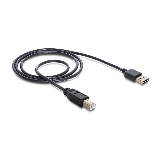 "DeLOCK 3m USB 2.0 A - B m/m. Cable length: 3 m. Connector 1: USB A, Connector 2: USB B, USB version: USB 2.0, Connector gender: Male/Male, Connector contacts plating: Gold, Product colour: Black"\n"This cable by Delock with EASY-USB male can be plugged into the USB-A female port in both directions. Thus the male port can be used both-sided and make the plug in easily."