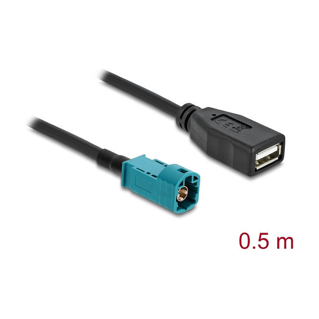 "DeLOCK 90702. Cable length: 0.5 m, Connector 1: HSD Z, Connector 2: USB A. Quantity per pack: 1 pc(s). Package type: Polybag. Country of origin: China"\n"This cable by Delock is suitable for connecting components of electronic technology and electronic in vehicles."