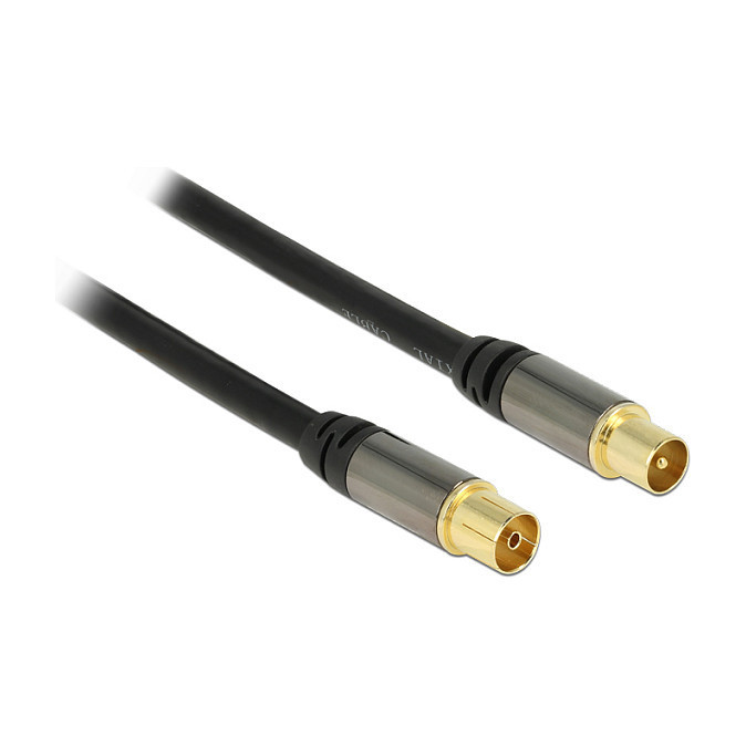 "DeLOCK 88925. Cable length: 5 m, Connector 1: IEC, Connector 2: IEC. Quantity per pack: 1 pc(s). Package type: Polybag"\n"Use this antenna cable to connect your home cinema equipment e.g. your TV with your aerial socket."