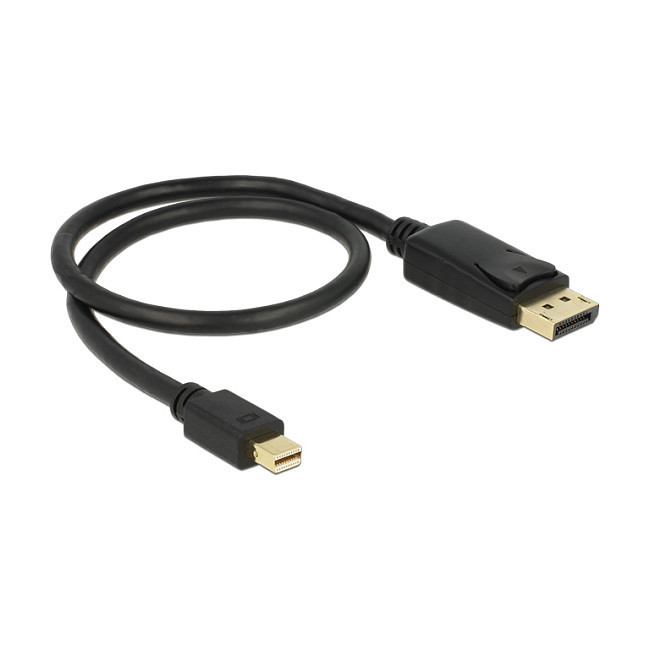 "DeLOCK Mini Displayport/Displayport, 0.5 m. Cable length: 0.5 m, Connector 1: Mini DisplayPort, Connector 2: DisplayPort. Cable diameter: 5.5 mm. Package type: Polybag. Quantity per pack: 1 pc(s)"\n"- Connector: mini Displayport 20 pin male > Displayport 20 pin male