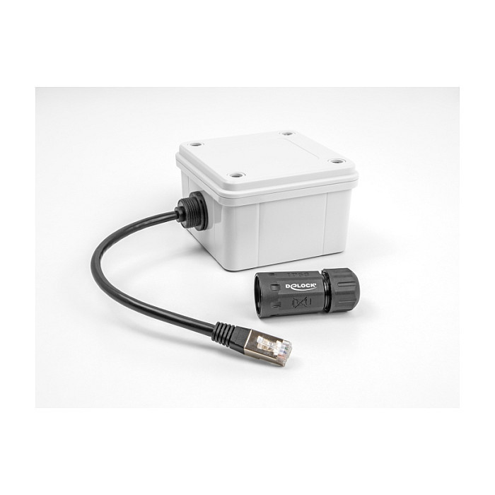The housing can be screwed to the female port and enables a waterproof network connection, e.g. outdoors.