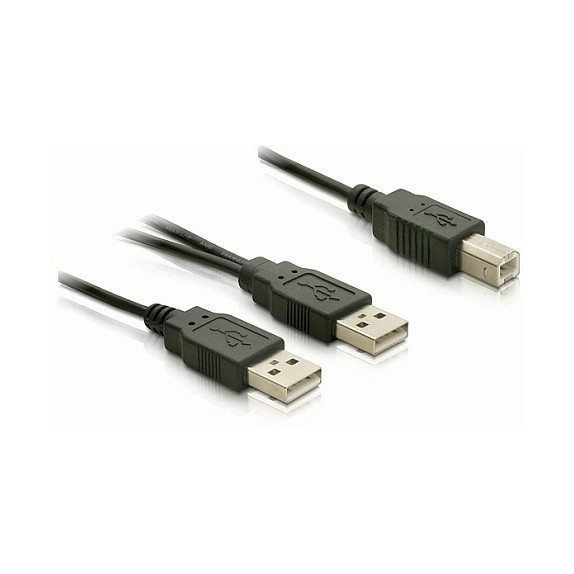 "DeLOCK USB-B/USB-A Cable. Cable length: 1 m. Connector 1: USB B, Connector 2: USB A, Connector gender: Male/Male, Maximum data transfer rate: 0.48 Gbit/s, Product colour: Black"\n"This USB 2.0 Y-cable by Delock enables you to supply power for devices like external enclosure and to transfer data via 2 free USB ports."