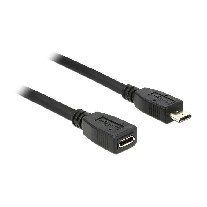"DeLOCK 0.5m USB 2.0. Cable length: 0.5 m. Connector 1: Micro-USB B, Connector 2: Micro-USB B, USB version: USB 2.0, Connector gender: Male/Female, Maximum data transfer rate: 0.48 Gbit/s, Product colour: Black"\n"This micro USB cable by Delock can be used as an extension of your USB type Micro-B interface."