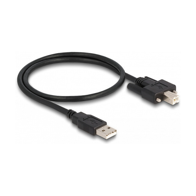 "DeLOCK Cable USB 2.0 Type-A male to Type-B male with screws 0.5 m. Cable length: 0.5 m. Connector 1: USB A, Connector 2: USB B, USB version: USB 2.0, Maximum data transfer rate: 0.48 Gbit/s, Product colour: Black"\n"This USB cable by Delock enables the connection between a device with a USB Type-B connector and a PC or a laptop equipped with a free USB port.