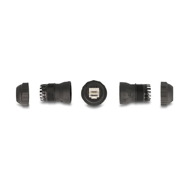 "DeLOCK Cable Connector RJ45 jack to RJ45 jack Cat.6A IP68 dust and waterproof. Connector 1: RJ45, Connector 2: RJ45. Product colour: Black"\n"This cable connector by Delock connect RJ45 network cables and is ideal for outdoor use e.g. in the garden.
