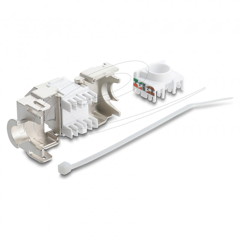 "DeLOCK 90938. Construction type: Flat, Product colour: White, Connector 1: RJ-45. Width: 17 mm, Depth: 49.1 mm, Height: 19.4 mm. Quantity per pack: 1 pc(s)"\n"This module by Delock can be used to connect a network cable and is suitable for easy snap-in mounting in various holders, such as keystone patch panels, face plates or surface-mount boxes.