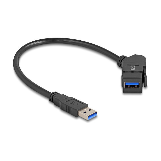 "DeLOCK USB 5 Gbps Type-A panel mount female 45° angled to Type-A male with 30 cm cable black. Connector 1: USB-A, Connector 2: USB-A, Cable length: 0.3 m. Product colour: Black"\n"This module by Delock can be used to extend e.g. a USB cable.