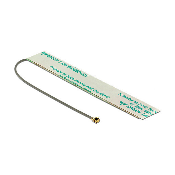"DeLOCK 88988. Antenna gain level (max): 3 dBi, Impedance: 50 Ω. Antenna type: Omni-directional antenna, Antenna connector type: MHF, Voltage Standing Wave Ratio (VSWR): 2.0:1. Width: 14 mm, Depth: 96 mm, Height: 0.9 mm. Quantity per pack: 1 pc(s)"\n"This LTE antenna can be installed indoors and can be used for reception of different LTE bands. It is completely UMTS, GSM, WLAN 2.4 GHz and ZigBee compatible."