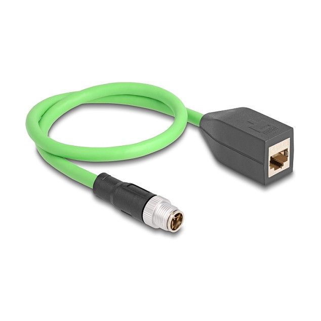"DeLOCK M12 Cable X-coded 8 pin male to RJ45 female PUR (TPU) 0.5 m. Cable length: 0.5 m, Certification: UL 94"\n"This industrial Ethernet cable by Delock can be used to connect various components with M12 connectors, e.g. for machine control or automation.