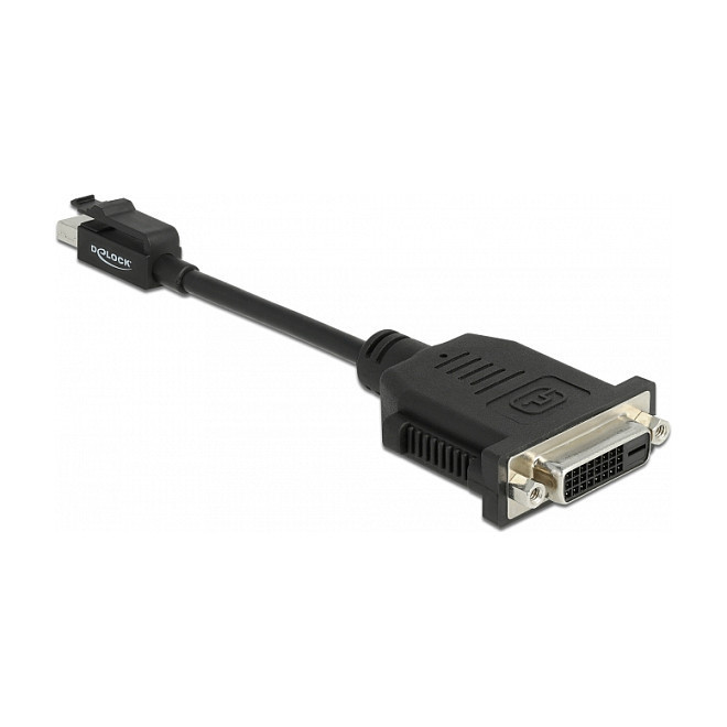 "DeLOCK 65979. Cable length: 0.15 m, Connector 1: Mini DisplayPort, Connector 2: DVI. Cable diameter: 4.8 mm. Package type: Polybag. Quantity per pack: 1 pc(s)"\n"This mini DisplayPort adapter by Delock can be used to connect a DVI monitor to graphics cards with mini DisplayPort ports that have special notches in the slot bracket above the ports. The additional latch of the plug of the adapter snaps into the notch and prevents the adapter from being pulled out unintentionally."