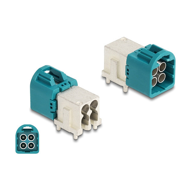 "DeLOCK Mini FAKRA Z plug quad angled A-Type PCB. Connector type: Mini FAKRA Z, Connector 1: Mini FAKRA Z, Connector 2: Mini FAKRA Z. Width: 8 mm, Depth: 21 mm, Height: 10 mm. Package type: Polybag, Quantity per pack: 1 pc(s)"\n"This adapter by Delock is suitable for connecting components of electronic technology and electronic in vehicles.