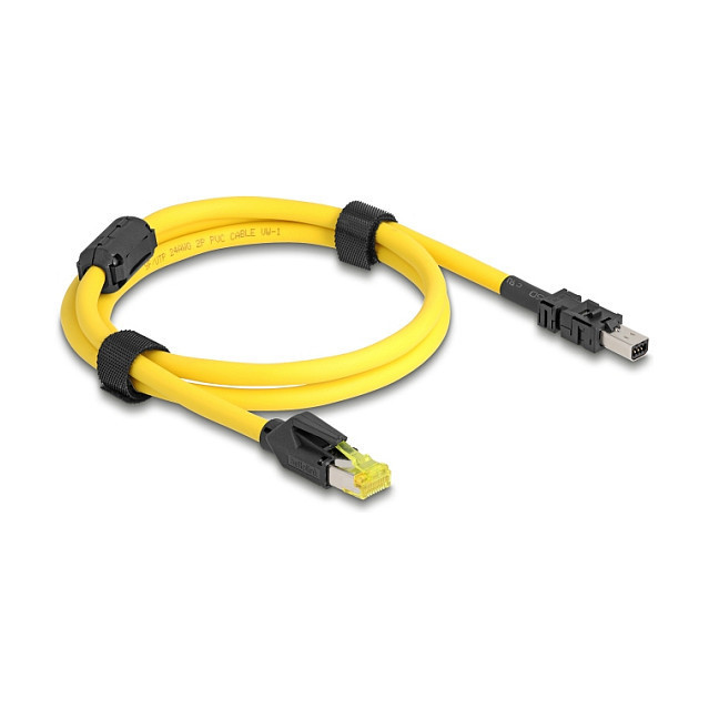 "DeLOCK 81250. Cable length: 1 m, Cable standard: Cat6, Connector 1: RJ-45, Connector 2: 8-pin terminal block, Product colour: Black, Yellow"\n"This cable by Delock can be used to connect devices with an RJ45 connection and devices that use a mini I/O connector in D-shape. It is often found in industrial automation applications and is suitable for e.g. machines or control systems."